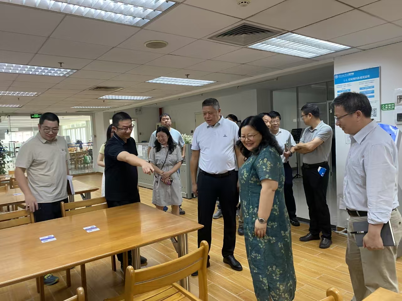 吴民主任指出,图书馆是学习生活和学术会议的重要场所,学校将统筹经费推进设施更新。随后,中心调研组还实地考察了2024年“以租代建”落成的密集书库,对新设备提升空间利用率效果表示肯定。